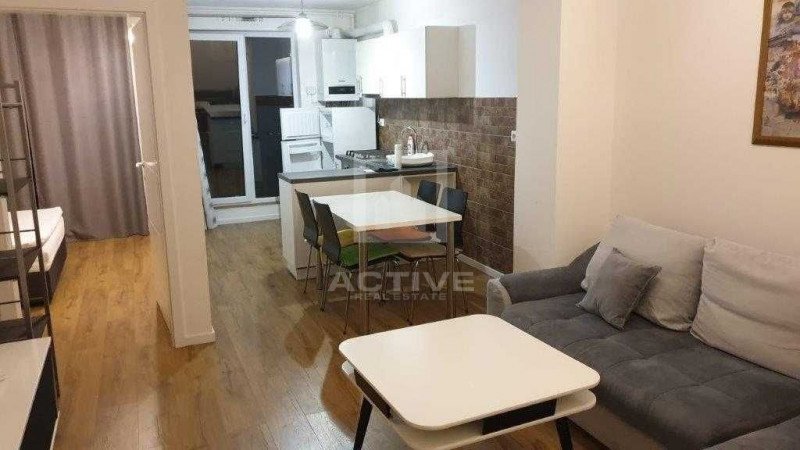 Apartament aflat intr-un ansamblu rezidential nou. Este situat la etajul 1 al unui imobil nou cu 5 etaje si un spatiu verde amenajat pe acoperis si este foarte aproape de FSEGA, Iulius Mall, Piata Marasti. Are o suprafata utila de 45mp plus balcon si este compartimentat astfel: hol intrare, living cu bucatarie open-space, dormitor, dressing, baie si un balcon dotat cu masa si scaune. Apartamentul este mobilat si utilat modern, cu centrala termica proprie, cuptor electric, aragaz, frigider, masina de spalat rufe si este disponibil imediat. In pret este inclus si un loc de parcare in incinta ansamblului.