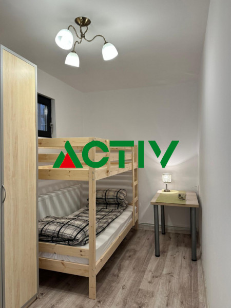 Apartamentul este situat la casă, într-o zonă liniștită, și este ideal pentru cazarea a până la 4 persoane. Dispune de două dormitoare separate, fiecare dotat cu pat etajat, fiind perfect pentru familii cu copii sau grupuri de prieteni sau cazare pentru muncitori.