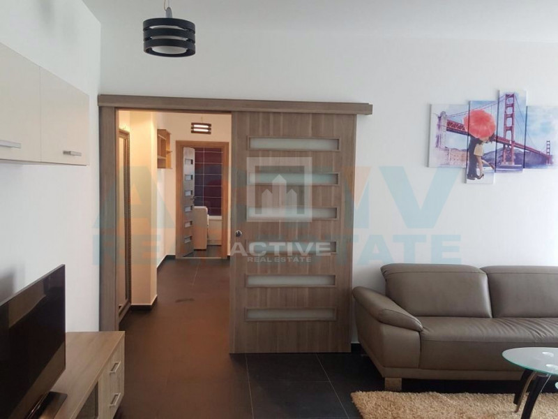 Apartament de lux de vanzare in Centru orasului. Apartamentul este orientat nord-vest, este situat intr-un bloc nou, este complet mobilat si utilat. Apartamentul este situat la etajul 2 al cladirii si este compartimentat astfel: living cu bucatarie, hol, 2 dormitoare, 2 bai. In pretul apartamentului este inclus si un loc de parcare.