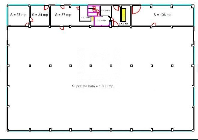 Este compusa din: hala in suprafata de 1.600 mp, vestiar, toalete si alte incaperi care pot fi folosite in diverse scopuri, toate in suprafata de aproximativ 235 mp.